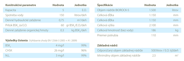 BIOROCK-5 je kompaktné, bez elektrické zariadenie pre čistenie odpadových vôd. Revolučné a spoľahlivé BIOROCK ®-S sú k dispozícii v rôznych kapacitách. BIOROCK ®-S séria je rad kompaktných balení čistiarní odpadových vôd, navrhnuté pre 5, 10 a 15 ekvivalentých obyvateľov. BIOROCK-5 je určený pre rodinné domy.